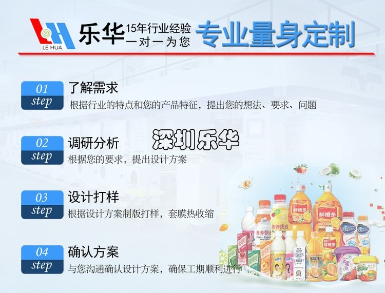 產品說明:深圳樂華材料公司專業生產PVC、PET、OPS熱收縮膜標簽,定制收縮膜袋。樂華包裝從事收縮膜印刷15年,具有豐富的行業經驗,擁有10色電腦全自動印刷設備,幾十種配套設備,高效的管理團隊。樂華包裝—為您的產品品質提升提供助力。